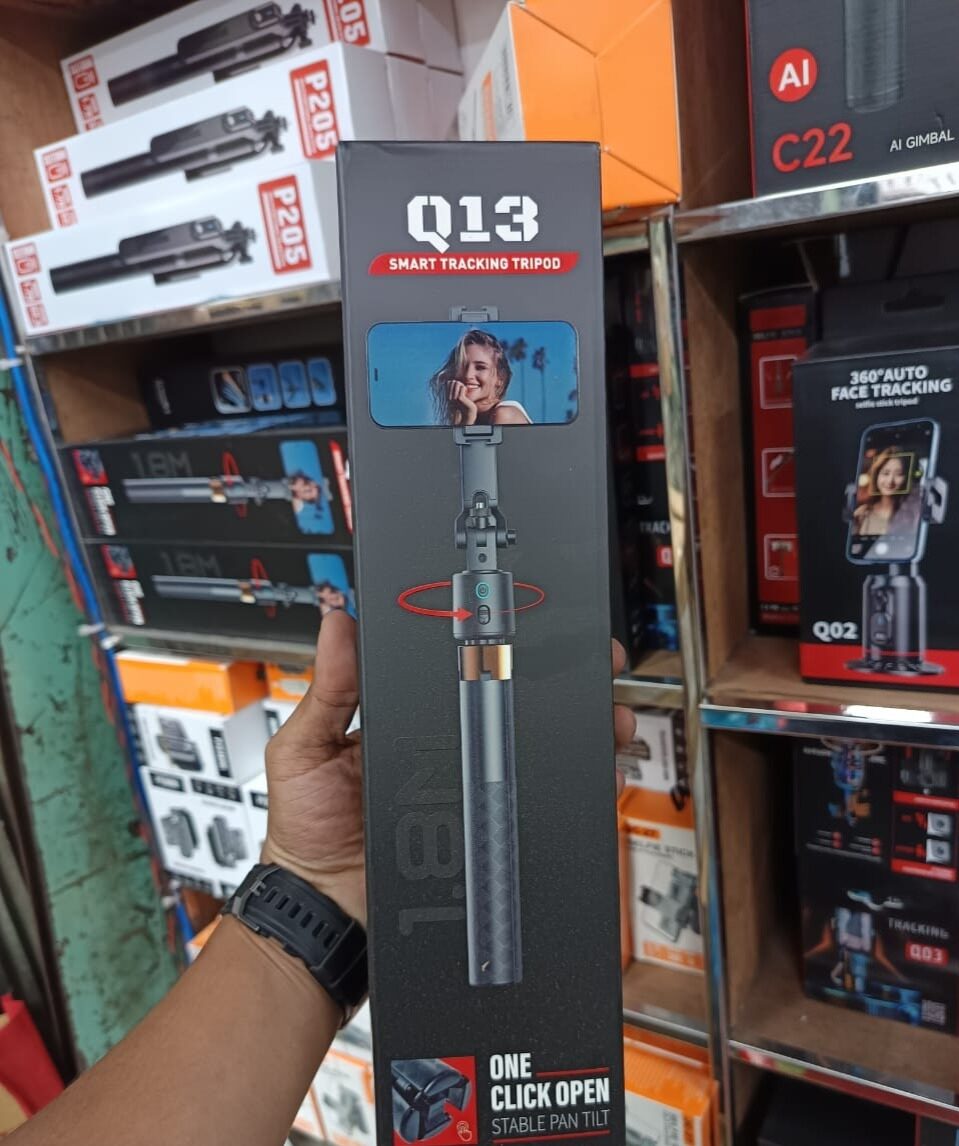 Q13 Smart Tracking Tripod। এটি একটি অ্যাডভান্সড সেলফি স্টিক বা ট্রাইপড যা সম্ভবত স্বয়ংক্রিয় ট্র্যাকিং (automatic tracking) ক্ষমতা সম্পন্ন।